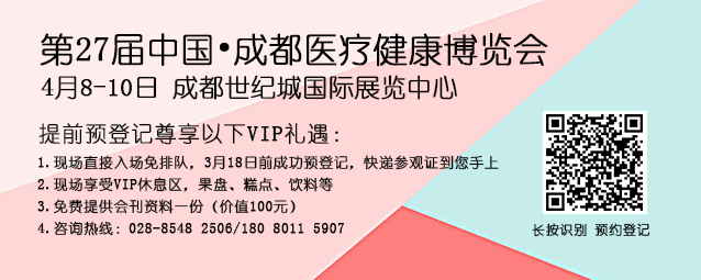 本次博覽會將于2021年4月8-10日成都世紀城國際展覽中心開展,即日起通過成都醫博會官網(http://m.99re79.com/MEE/)微信公眾號(西部醫博會)或觀眾熱線(18080115907/028-86240031)等方式都可進行參觀預登記,尊享免費快速入場、獲取展會快訊、獲贈展會會刊、參與抽獎活動、優先參加同期會議等多重福利,凡3月18日前預登記成功的客戶,組委會將免費快遞參觀胸卡到您預留的地址。還沒有預登記的小伙伴抓住機會預登記噢~(預登記鏈接:http://kxg9leeg9ef7xgkl.mikecrm.com/SScsRQv)