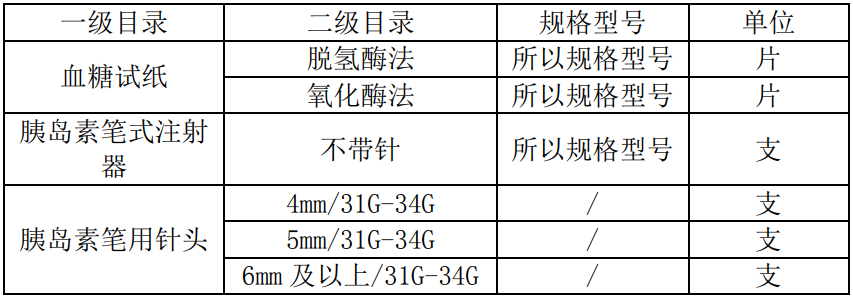本次集中帶量采購品種為血糖試紙、胰島素筆式注射器、胰島素筆用針頭。