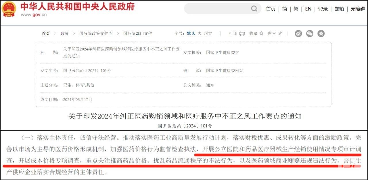 2023年起,審計署正式加入醫藥購銷糾風工作。今年,開展公立醫院專項審計又被寫入國家文件之中,明確將重點關注藥械流通以及商業賄賂等問題。