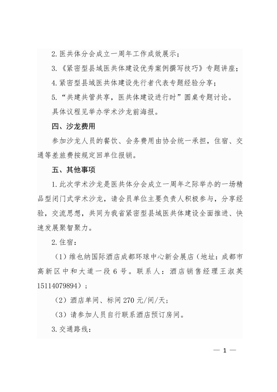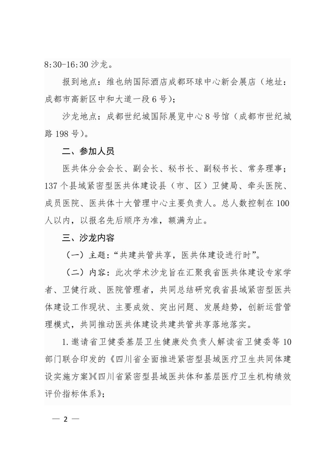 1、此次學術沙龍是醫共體分會成立一周年之際舉辦的一場精品型閉門式學術沙龍,請會員單位主要負責人積極參與,分享經驗,交流思想,共同為我省緊密型縣域醫共體建設全面推進、快速發展聚智聚力。