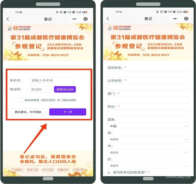 點擊下方“參觀參展”-“參觀登記”,進入報名界面
