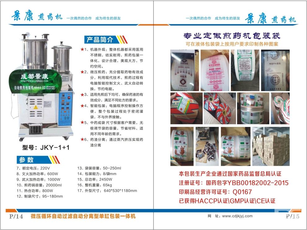 6、常壓密閉無蒸汽不銹鋼雙缸煎藥包裝一體機