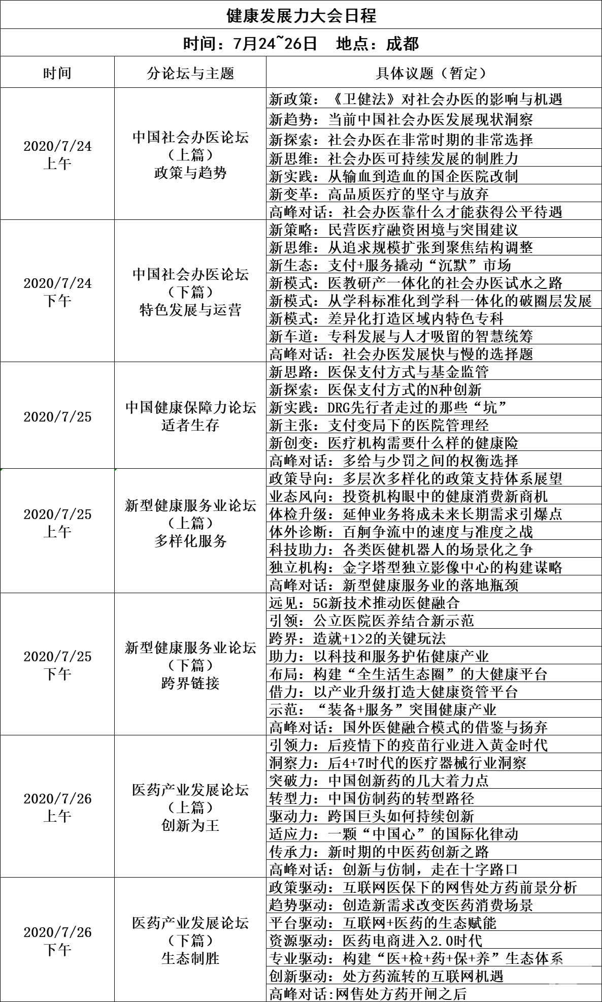 因為屆時,將會百余位不同專長的產(chǎn)業(yè)界大咖將帶你解讀國際領(lǐng)先的公共衛(wèi)生與健康發(fā)展理念,透徹理解我國當(dāng)前大健康產(chǎn)業(yè)促進政策,探尋醫(yī)教研產(chǎn)四位一體化的社會辦醫(yī)試水之路,洞悉知名投資機構(gòu)眼中的健康消費新商機、收獲構(gòu)建大健康時代新生態(tài)的新方法……